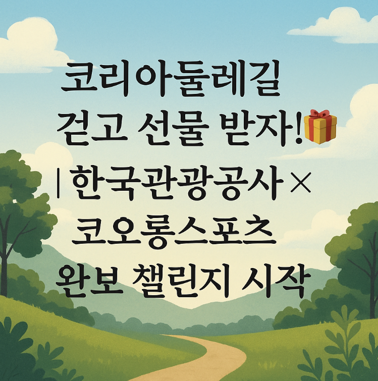 여행지에서 선물까지 받을 수 있는 걷기 챌린지, 믿기 어렵다면 지금부터 확인해보세요. 한국관광공사와 코오롱스포츠가 함께 준비한 코리아둘레길 완보 이벤트는 단순한 캠페인이 아닙니다.코스도 쉽고 참여 방법도 간단한 데다, 실용적인 경품까지 기다리고 있어요.올해 건강과 여행을 동시에 챙기고 싶은 분들이라면 꼭 읽어보세요!“코리아둘레길”은 어떤 길인가요? 한반도를 크게 한 바퀴 도는 약 4,580km의 걷기길이 있다는 사실, 알고 계셨나요?바로 ‘코리아둘레길’입니다. ‘코리아둘레길’은 해안선과 국경, 산지를 따라 조성된 장거리 걷기 여행길로,한국을 한 바퀴 도는 느낌을 물리적으로 체험할 수 있는 길입니다.총 4개 구간으로 구성되어 있으며, 각 구간마다 테마와 경관이 달라 걷는 재미가 더해집니다. 🌀 해파랑길(..